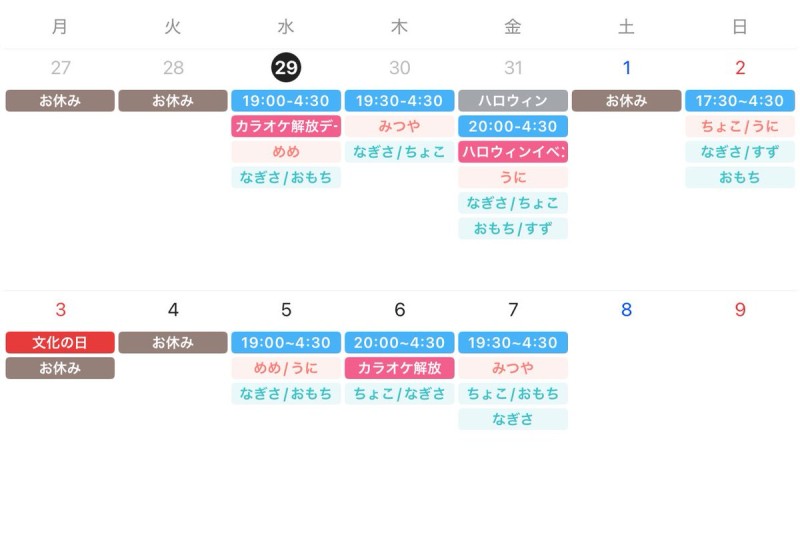 🧡#恵比寿coffret 𝕤𝕔𝕙𝕖𝕕𝕦𝕝𝕖✍️ ■11/15(土) …ちょこ5周年イベント🍫❤️‍🔥 ■11/19(木) …カラオケ解放DAY🎤 ご主人様お嬢様は1曲200円で歌えます🎶 ■11/22(土) …ボジョレー解禁🍷✨ お休みの日は@ebisu_ecru で会えるかも🎀 https://t.co/ImRiUOQXVG