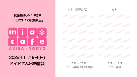 👑本日11月9日(日)のミアカフェ秋葉原店
